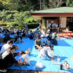 寒露の候、野外研修場でイベントを行いました。センターで受付の後、現地に移動しました。集合の後、メスティンにコメを入れ計量カップで水を計り浸しました。薪割りをして薪ストーブにマッチで火を付け鍋を温めました。固形燃料に火を付け、ミニ五徳にメスティンをセットしました。森歩きをして、カツラの匂い・ヒヨドリバナ・オトコエシ・ヘクソカズラの実などを観察しました。森林クイズをして学習しました。管理棟に戻り、メスティンの昼食を食べました。歩道で色々な落ち葉を集めて、落ち葉のステンドグラスをして楽しみました。とても、心地よい一日でした。