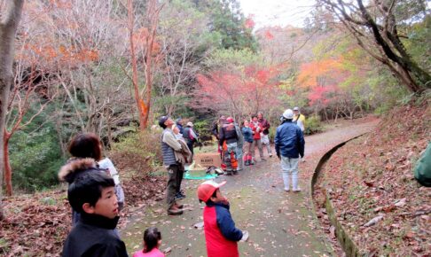 仲秋の候、こもれびサークルでイベントを行ないました。ピロティで集合してネイチャーカードを使って森歩きをしました。遊歩道~猫坂礎石~展望台~土塁~遊歩道~こどもの国を歩き、シラヤマギク・ガンクビソウ・ヌマダイコン・ササクサ…